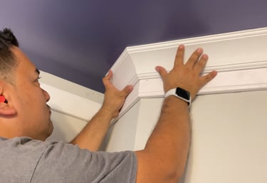 Repairing cabinetry, installing baseboards, crown molding, and shelving