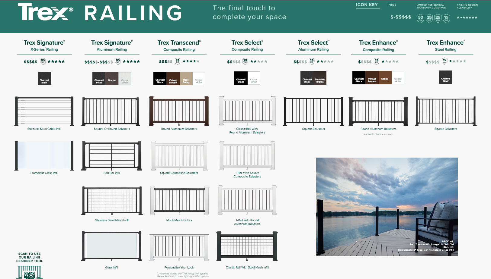 Transform your outdoor spaces with our premium railing system that combines safety and style! Designed to enhance the beauty of your deck while providing sturdy support, our railings are crafted from high-quality materials that withstand the elements. Choose from a range of elegant designs and finishes to complement your aesthetic. Elevate your outdoor experience and ensure peace of mind with our reliable railing options.
