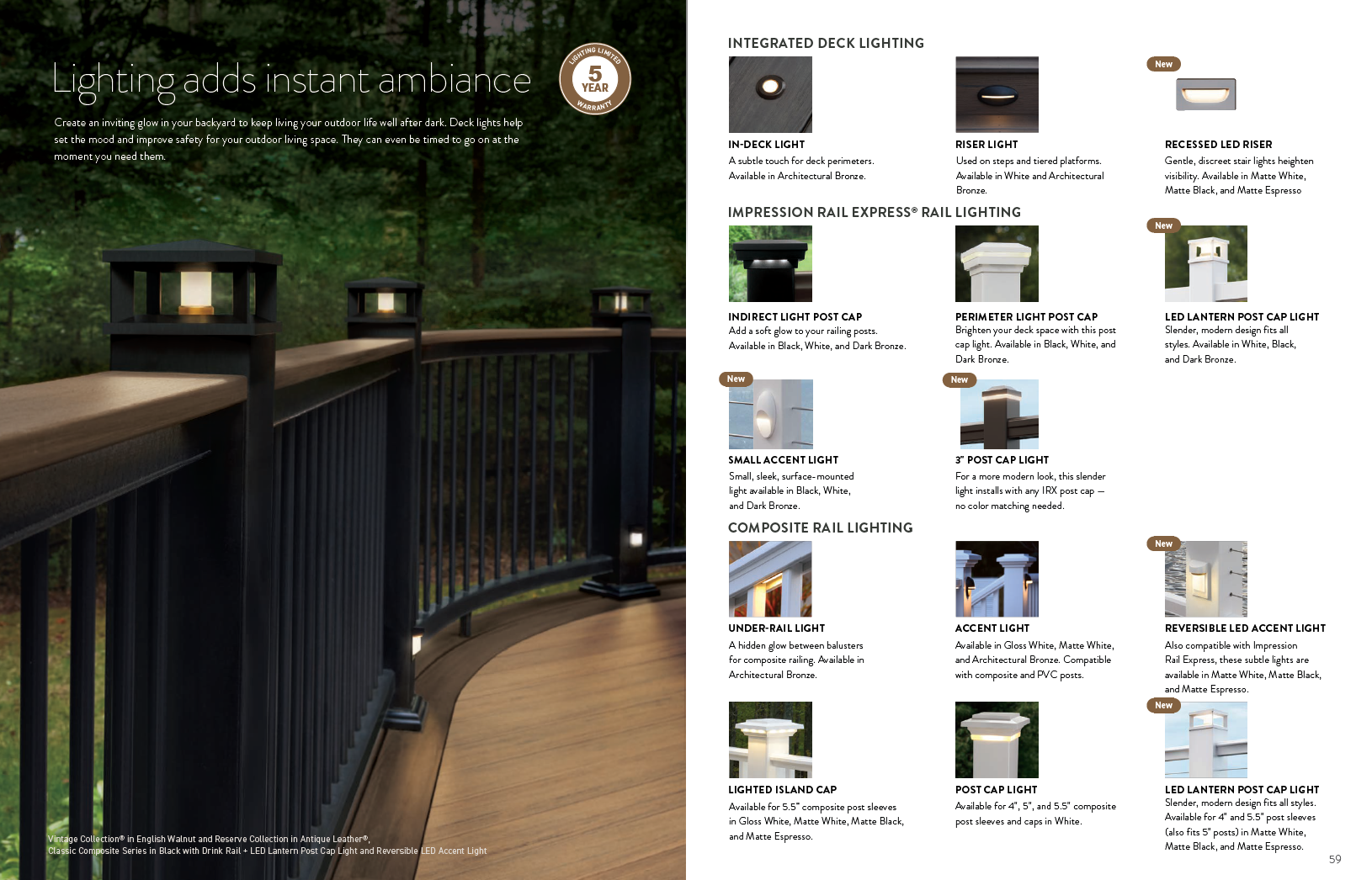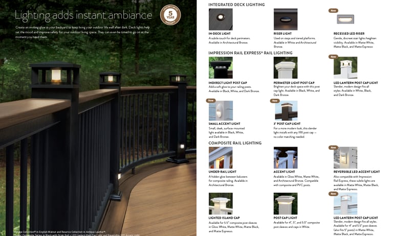 Our deck lighting offers new and beautiful ways to elegantly define your space and improve safety by enhancing visibility on stairs and transition points.