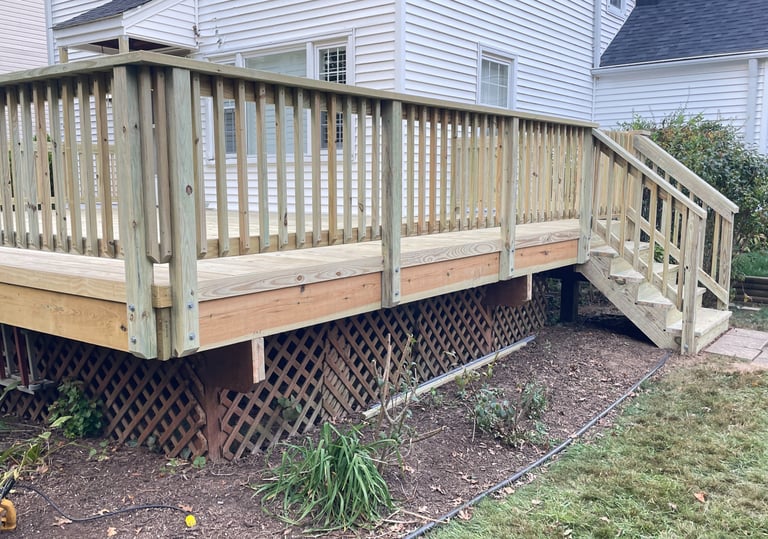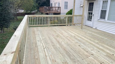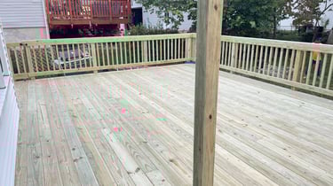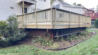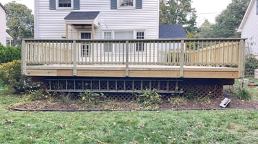 On this project We did a new deck build. We install new 2x6 premium decking boards. No railing, due to heght was under 30"New Deck Build in Potomac Md