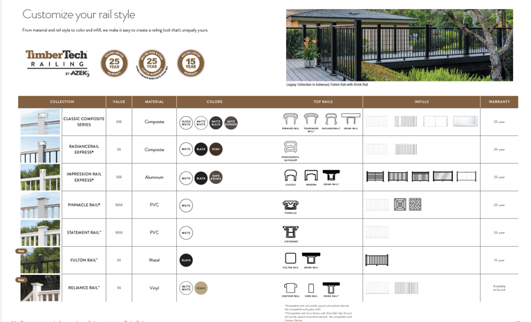 Made from high quality materials that stand the test of time. Never sand, stain or seal your railing again.