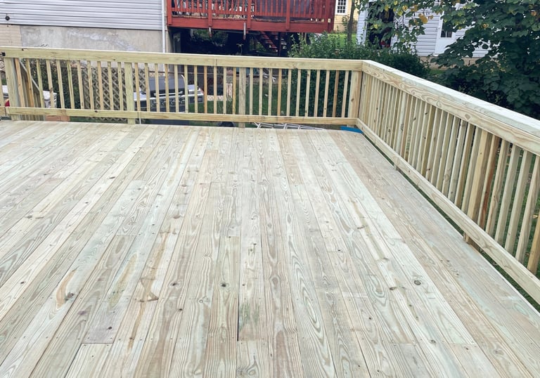 Resurface Deck:On this project We did a resurface work. Where we replace old decking boards with 2x6 prime pressure treated decking boards. And also replace the old railing with 2x4 top and bottom, 2x2 pt balusters and 2x6 cap decking board. in Gaithersburg Md